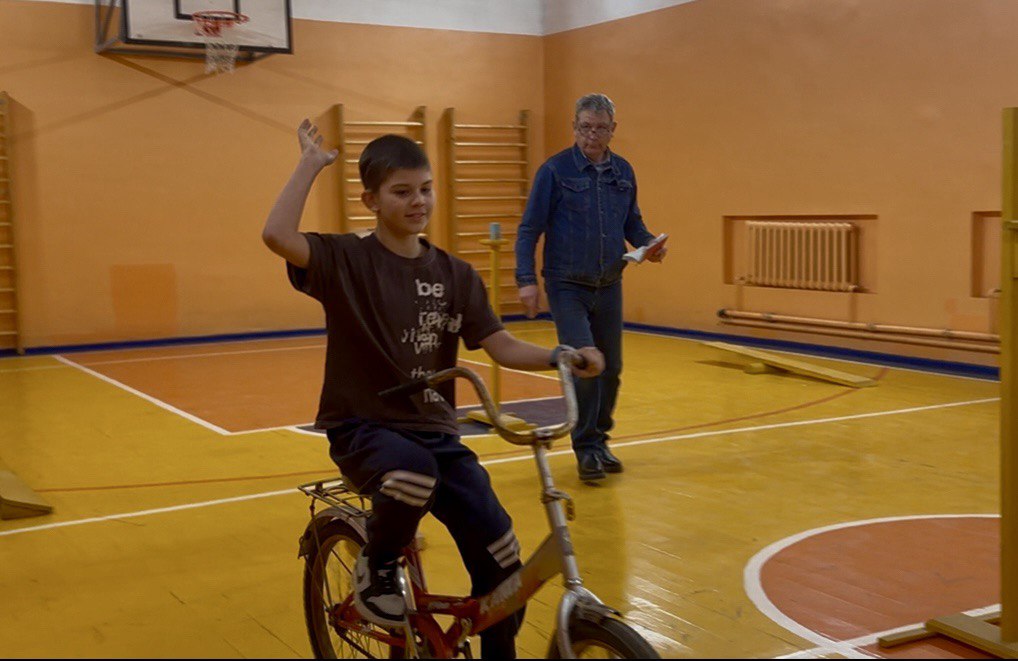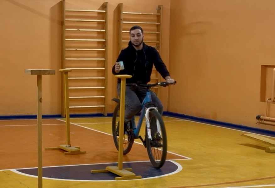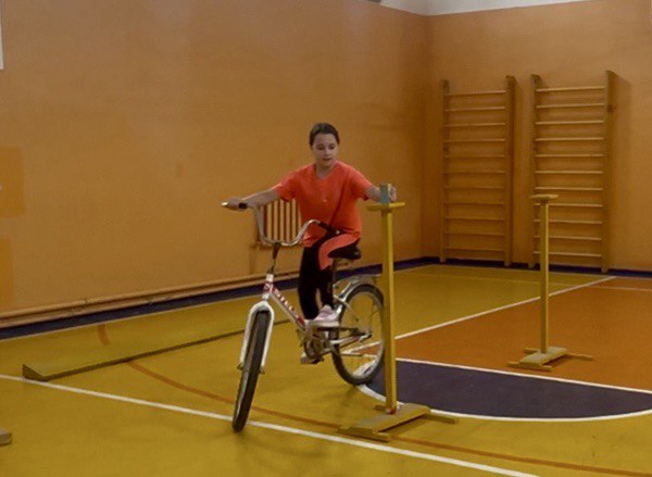 - Практика: захватывающее фигурное вождение, где нужно было проехать сложную трассу на велосипеде.